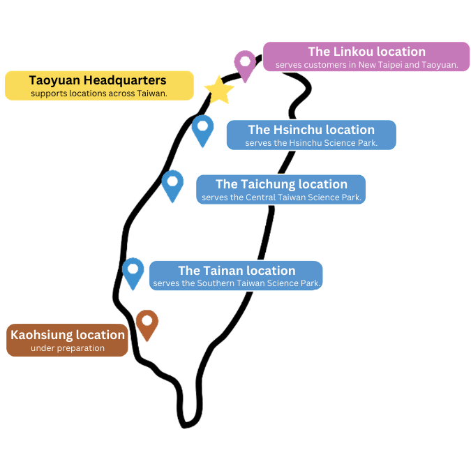 Over the past decade, we have come to deeply appreciate the importance of timely support for our clients. This is why we have established service centers in Taoyuan, Hsinchu, Taichung, and Tainan, supported by a professional engineering team with decades of relevant experience. Our team is ready to handle on-site work and provide immediate solutions to any technical issues you encounter.